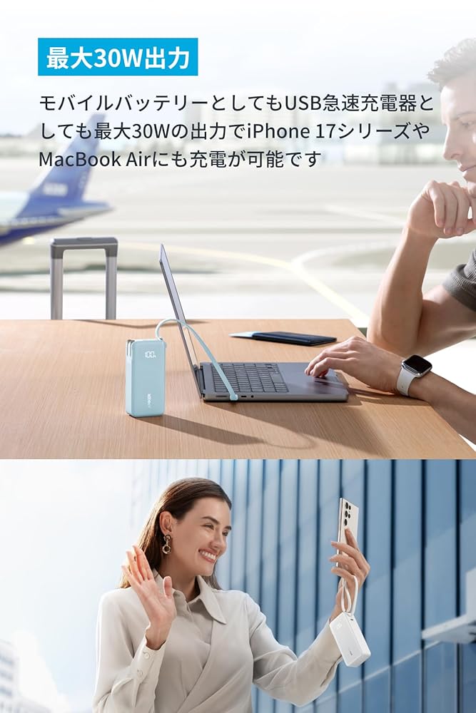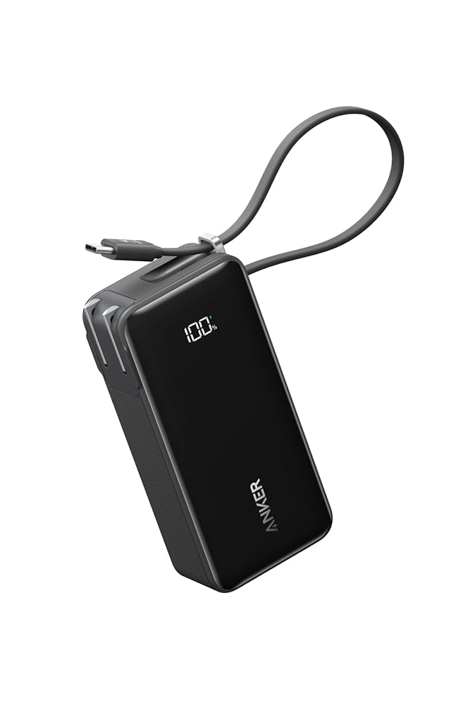 Anker Power Bank (10000mAh, Fusion, Built-In USB-C ケーブル) (10000mAh 30W出力モバイルバッテリー搭載 30W出力USB充電器) / LEDディスプレイ搭載/ケーブル一体型/コンセント一体型/折りたたみ式プラグ 1台3役 / iPhone 17 / 16 / 15 Android iPad その他各種機器対応 (ブラック)