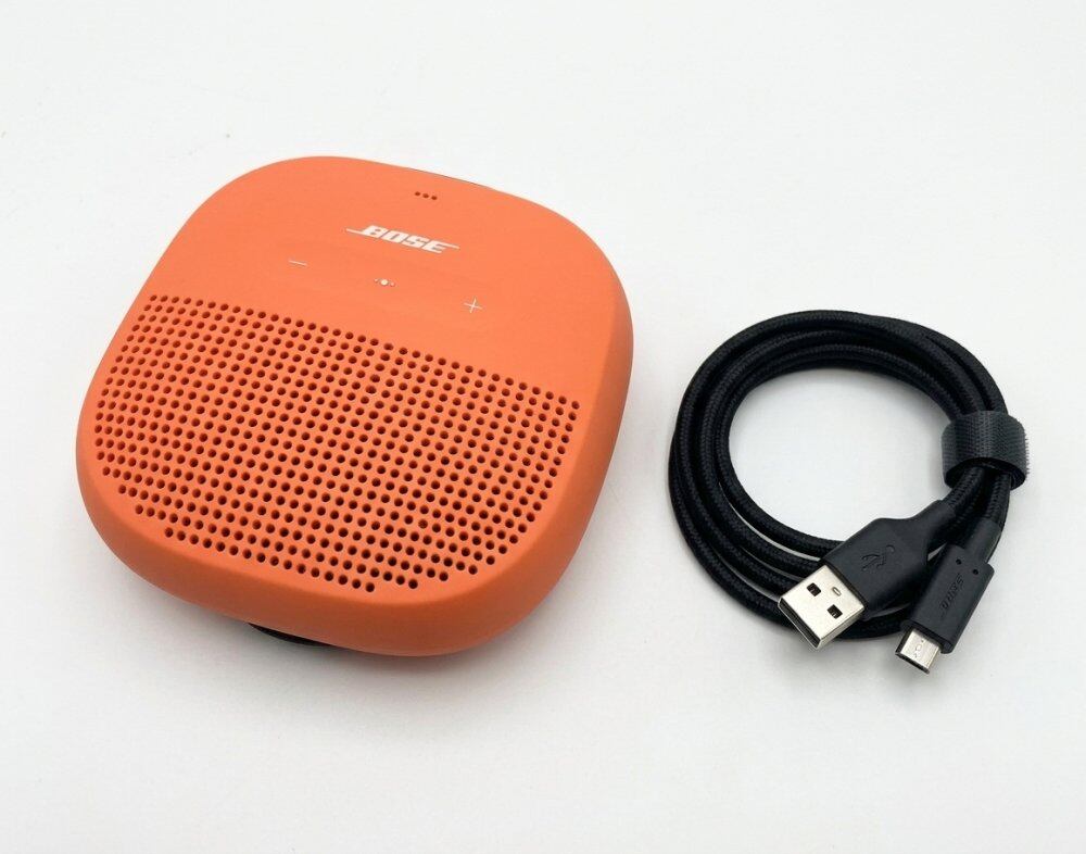 【中古】Bose SoundLink Micro Bluetooth speaker ポータブル ワイヤレス スピーカー マイク付 最大6時間 再生 防水 9.8 cm (W) x 9.8 cm (H) x 3.5 cm (D) 0.29 kg ブライトオレンジ ストラップ付